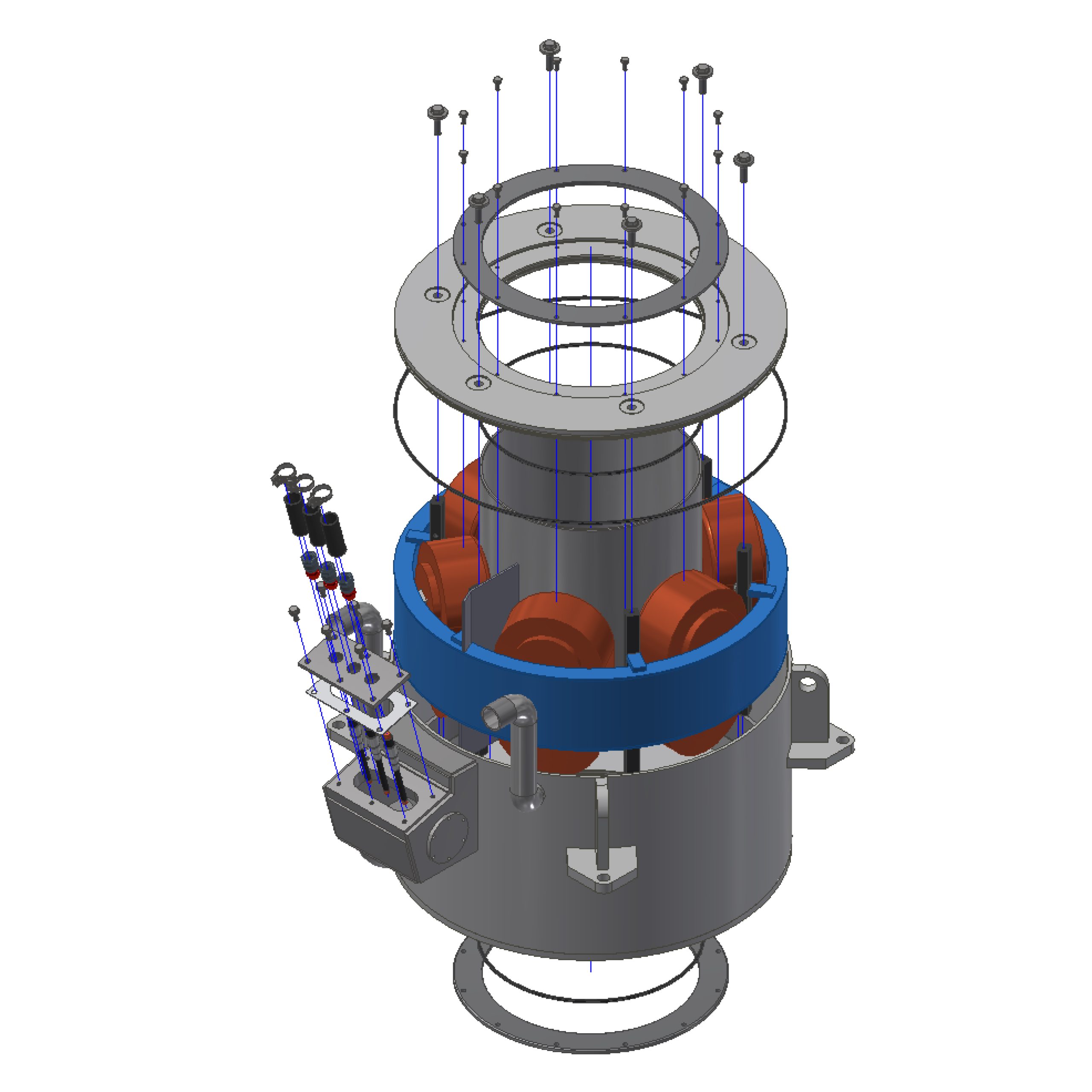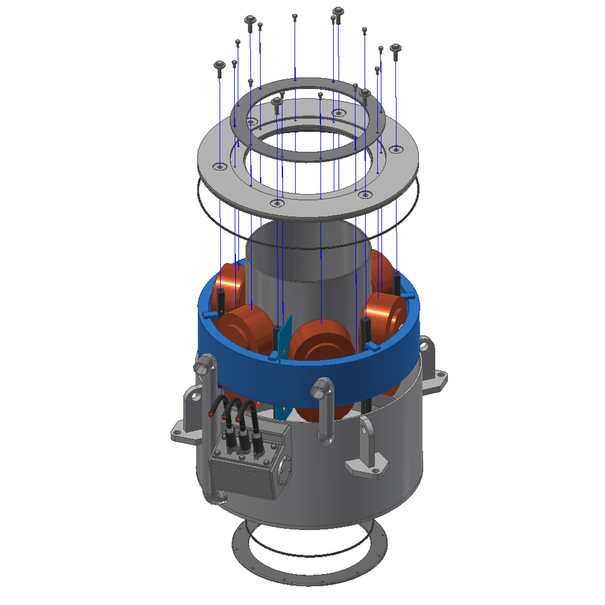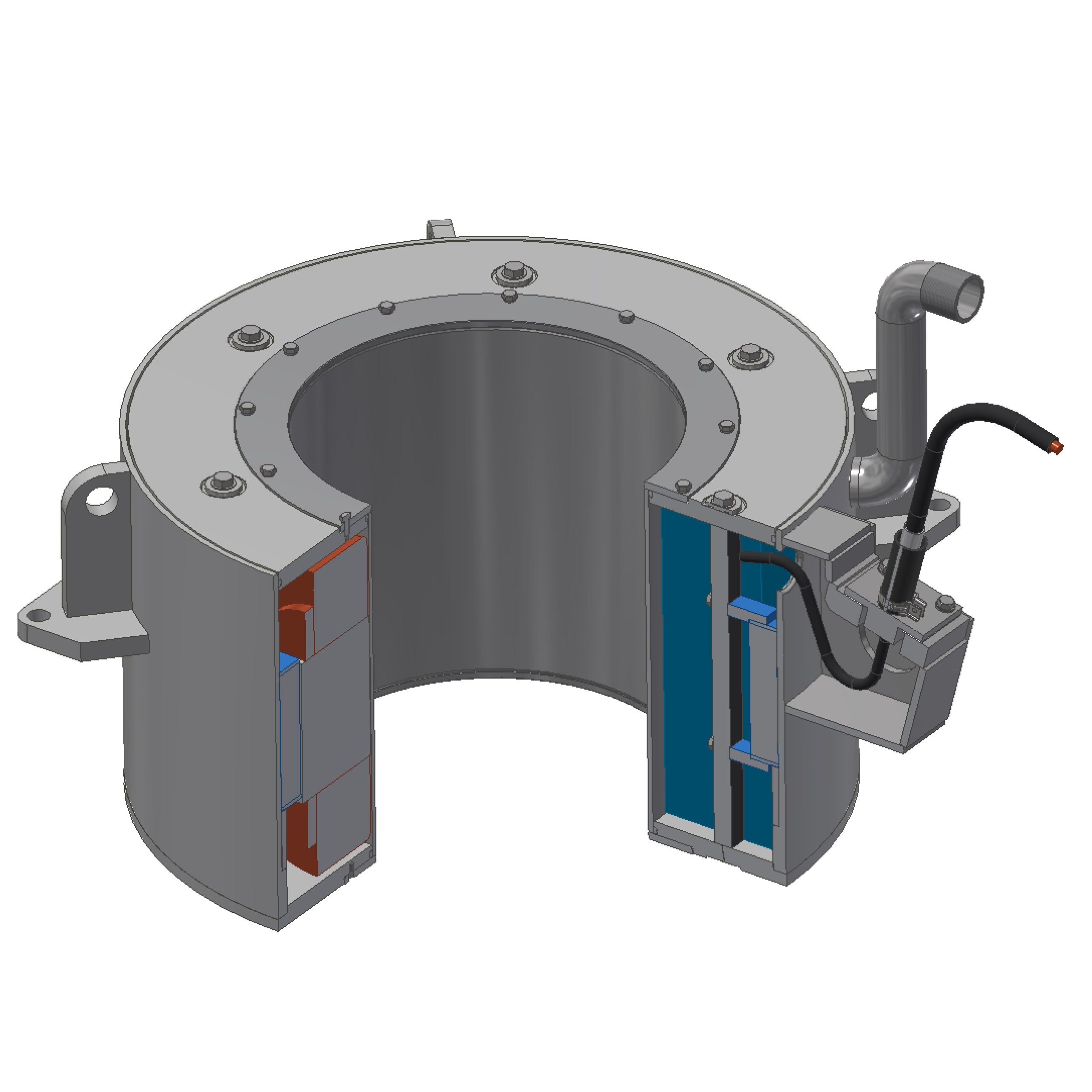 - Катушка MEMS для разливки круглых заготовок диаметром до 410 мм с наружным охлаждением обмотки собственной конструкции и изготовления на замену катушек ABB.